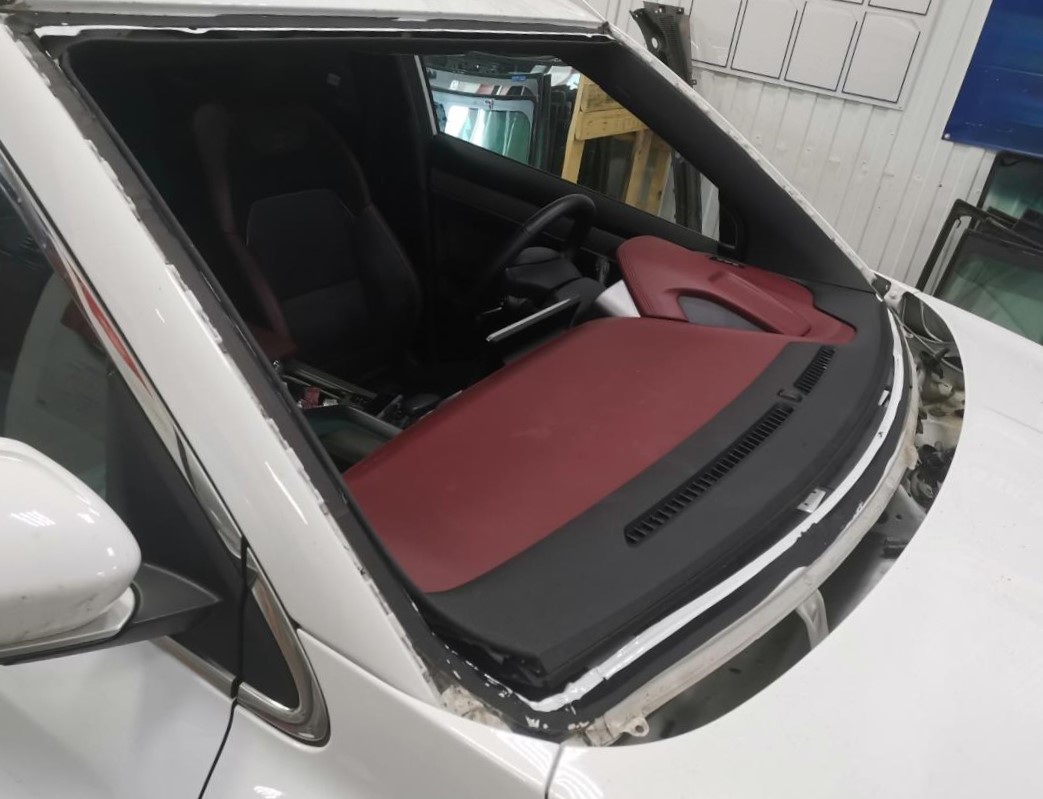 — Аккуратное снятие с сохранением целостности уплотнителя и кузова. - Очистка рамы лобового стекла